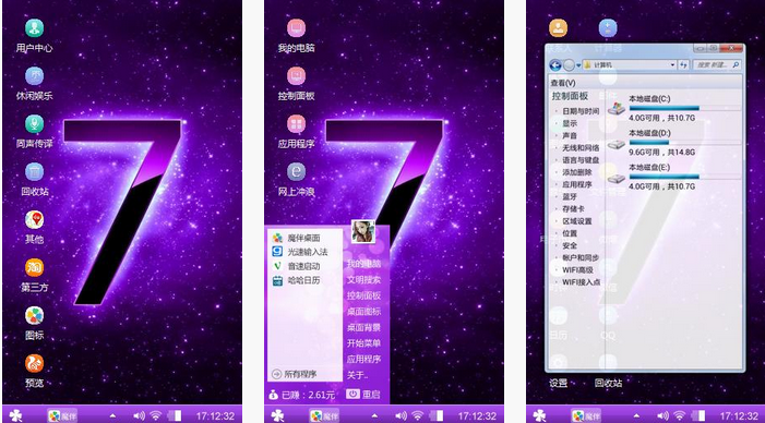 这是一款紫色星际手机主题,紫色元素贯穿了整个画面的色彩,浩淼的星空弥漫着紫色风情。偶尔闪烁的星光像是圣洁的钻石,象征着恋人们的浪漫爱情。